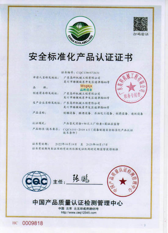 名 稱:安全標(biāo)準(zhǔn)化產(chǎn)品認(rèn)證證書